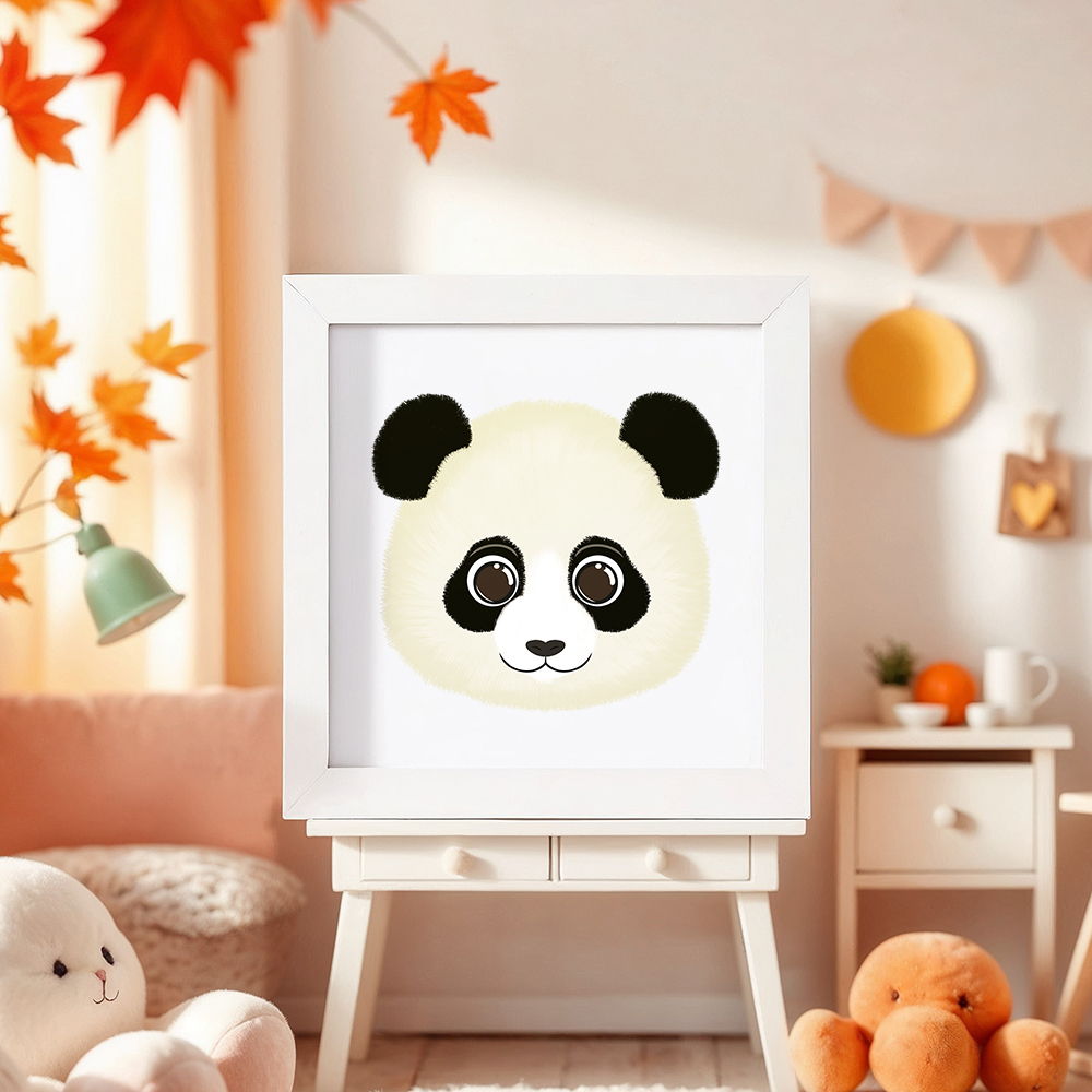 Cette illustration de panda est disponible en format A4 (21 × 29,7 cm) sans cadre, ou dans un cadre carré de 20 × 20 cm, prêt à être accroché. Imprimée sur une toile canevas 100 % coton biodégradable de haute qualité, elle garantit une durabilité exceptionnelle. Vous pouvez également personnaliser l’illustration avec le prénom de votre enfant ou choisir entre une version encadrée ou sans cadre.